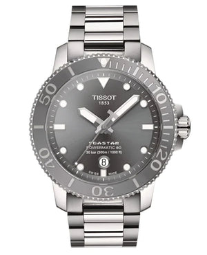 The Tissot Seastar 1000 Automatic is the perfect choice for divers. It impresses with its high performance and its design. With the Seastar 1000 you can boldly venture into the deep, because she will never let you down. Tissot Seastar 1000 Powermatic 80 men's watch. Stainless steel case, 43.0 mm diameter, 12.7 mm high, screw-down crown, blue ceramic bezel, blue dial with white luminous indices, SuperLuminova, stainless steel bracelet with folding clasp with safety, diver extension and push-buttons, interchangeable quick release bracelet. Scratch-resistant sapphire crystal glass. Water-resistant up to a pressure of 30 bar (300 m / 1000 ft). Swiss automatic movement Powermatic 80, with 80 hours of power reserve.