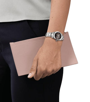 The Tissot T-My Lady is not just a feminine watch. Its concept, design and profound vocation make it the ideal watch for women: ladies, elegant, refined or business women - who consider that a watch is an object that journeys through time. Its dimensions - 29 mm in diameter - makes it the ideal everyday companion. Its mechanical self-winding movement, regulated by a Nivachron spiral has exceptional non-magnetic capacities. Case size 29.3 mm. Water resistance up to 100 meters.