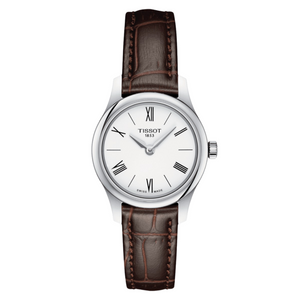 The Tissot Tradition family gives ultra-modern watchmaking a justified hint of nostalgia, giving today’s technology a vintage-style design signature. High-tech operation is perfectly balanced with classical details and subtle vintage-look finishes. These are complemented by design elements such as guilloche decoration and a gently curved case. The Tissot Tradition promises wearers endless hours of precision with sustainable good looks.