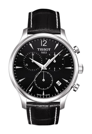 The Tissot Tradition models are modern timepieces inspired by 1950s design. The vintage-style design is perfectly balanced with the classical details and subtle finishes such as guilloche decoration and a gently curved case. Case size 42 mm. Water resistance up to 30 meters.