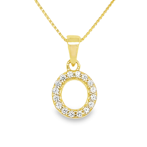 Yellow Gold Plated Sterling Silver Cubic Zirconia Letter O Pendant. This pendant is a stylish and personalized accessory that features the letter O in cubic zirconia stones. The pendant is made of sterling silver and plated with yellow gold for a luxurious look. The pendant comes with a matching silver chain that complements the pendant’s shine. This pendant is a great gift for yourself or someone who has the initial O in their name. It is a versatile piece that can be worn with any outfit and for any occasion.