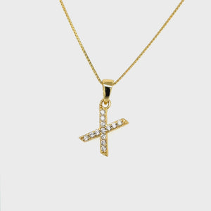 Yellow Gold Plated Sterling Silver Cubic Zirconia Letter X Pendant. This pendant is a stylish and personalized accessory that features the letter X in sparkling cubic zirconia stones. The pendant is made of sterling silver and plated with yellow gold for a luxurious look. The pendant comes with a matching silver chain that complements the pendant’s shine. This pendant is a great gift for yourself or someone who has the letter X in their name. It is a versatile piece that can be worn with any outfit and for any occasion.