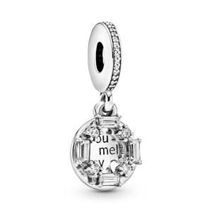 Melt someone's heart with this engraved charm, detailed with the very same words. The ice-inspired dangle is made from sterling silver with a ring of cubic zirconia in different cuts and a polished metal disc with a cut-out heart. Wear it on your Pandora Moments bracelet or share the sentiment with someone special.