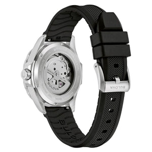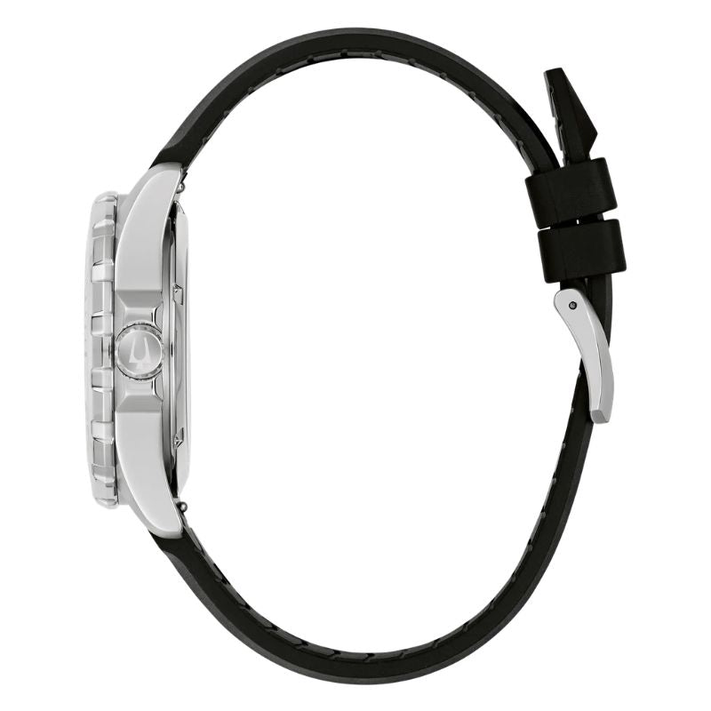 An uncompromising redesign of one of Bulova’s most celebrated models, the new men’s Marine Star Series B watch strikes the perfect balance between form and function. Perfectly sized at 41mm, the stainless steel case features 200m of water resistance, a screw-down crown, and a sapphire crystal, while its new unidirectional bezel has a bi-colour aluminum insert with a timing scale. Complementing the black and silver bezel, the sunray dial shifts from silver to black, while bold, luminous hands and hour markers ensure optimal legibility above and below the waves. The watch is paired with an HNBR rubber strap and has a case back crystal to show off the automatic movement with 42 hours of power. Reimagined and better than ever, the new Bulova men’s Marine Star Series B watch is the perfect companion for every adventure, near and far.