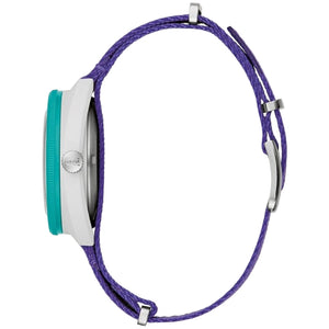 Inspired by the natural beauty of the ocean’s coral reefs, our latest limited-edition Bulova Snorkel brings added vibrancy to the already colourful collection. Sharing its DNA with the iconic Oceanographer, the 41mm timepiece is constructed from a new innovative Hybrid Ceramic—a composite material with enhanced durability that is lightweight and feels luxuriously smooth. This model’s teal wave-pattern dial and striking white ceramic case are complemented by a teal unidirectional bezel with a bi-colour insert and a violet #TIDE Ocean Material® NATO strap made from ocean-bound plastic. With silver-tone hands and markers with luminescent fill, a date display, an individually numbered case back etched with an image of a coral reef, and with 100m water resistance, it perfectly balances style and functionality with Bulova’s legacy of iconic watchmaking. Limited to 3,000 pieces worldwide.