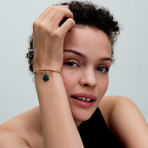 Channel the heart of the jungle with the Opalescent Green Heart Dangle Charm. A lab-created, heart-shaped iridescent opal features a spectrum of colours and streaks of glitter designed to evoke the vivid colours of the tropics. The heart hangs from an angle from a 14k gold-plated jump ring and pear-shaped bail. Pair this vibrant charm with other warm-toned styles to create a rich focal point and remind yourself of the wild, free-spirited energy of nature and summer.
