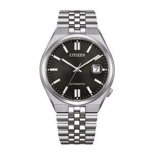 Citizen Tsuyosa automatic mens watch NK0020-55E. Stainless steel case and bracelet with black dial, czse size 40mm. Movement automatic. Water resistance uo to 50 meters. Sapphire crystal. Safety Folding clasp with push buttons.