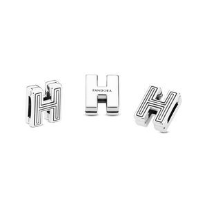 This letter H charm in sterling silver is detailed with contrasting surfaces: smooth and lined sides flip to reveal the look you want. Compatible with Pandora Reflexions, our collection of flat mesh bracelets in beautiful metals, the flat clip on charm can be worn with the other letter charms from the series to spell out your initials or those of a loved one.