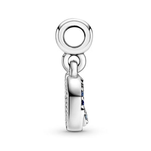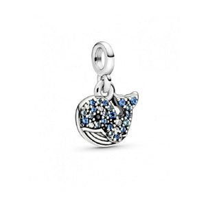 My Blue Whale dangle charm is inspired by the ocean, summer and self-discovery. This hand-finished sterling silver shimmering Pave whale is covered in hidden details including a small lifted fin and life-like lines on its belly. The Pandora Me charm also features a black crystal, sparkling clear cubic zirconia, icy blue, skylight blue and stellar blue crystals. Let the beachy vibes inspire you to find what the whale symbol means to you.