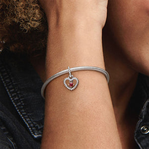 A favourite shade of lipstick or a perfectly ripe raspberry? All that you are and all you love, captured in colour. Inspired by the beaded designs of Purely Pandora, this heart-shaped dangle is hand-finished in sterling silver and features a claw-set buff top-cut blazing red man-made crystal in the centre. Wear it on Pandora bracelets or necklaces to define and redefine your style by choosing colours that express who you are.