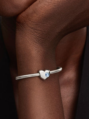 Engrave a message of love. Our sterling silver heart charm with a flush-set blue man-made crystal is the perfect canvas for a personal note or meaningful memento.