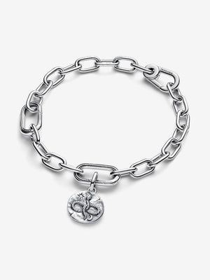 A symbol of renewal, coiled in sterling silver. Inspired by ancient coins, this powerful medallion features a flush-set clear cubic zirconia and is engraved with 'MEMENTO VIVERE' — Latin for 'REMEMBER TO LIVE'.