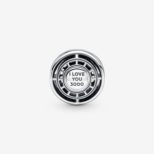 Carry the source of Iron Man's power with our Marvel The Avengers Iron Man Arc Reactor Charm. Representing Iron Man's artificial heart, our sterling silver charm features transparent blue enamel and textured details to recreate the look of mechanical machinery. Engraved on the back are the iconic words shared between Tony Stark as Iron Man and his daughter: "I love you 3000." Add this charm and more of your favourite heroes to our Pandora Moments Marvel The Avengers Logo Clasp Snake Chain Bracelet.