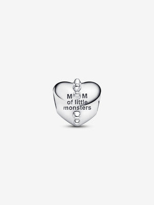 Tap into the playful side of motherhood with the Mom's Little Monsters Heart Charm. Made of sterling silver, this heart-shaped charm features "Mom of little monsters" engraved on one side and a monster's face on the other side. Three-dimensional spikes, cut-outs and sparkling stones embellish this charm and make it even more eye-catching. Inspired by motherhood in all its expressions, this charm represents the way our little mischief-makers can also be a mom's biggest joy.