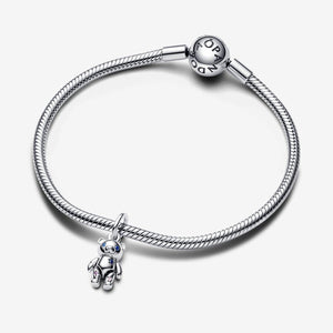 Our Movable Teddy Bear Dangle Charm is made of stardust and love. This extra-special teddy bear charm is crafted with stones set in star shapes, inspired by galaxies of shooting stars. With moveable arms and legs, this silver dangle charm serves as the perfect reminder that anything is possible. Featuring a blue man-made crystal set in a star to represent its heart, this teddy makes for an extra special addition to your most-loved charms.