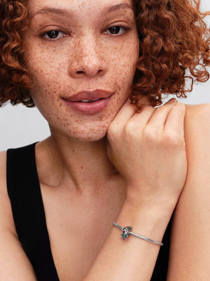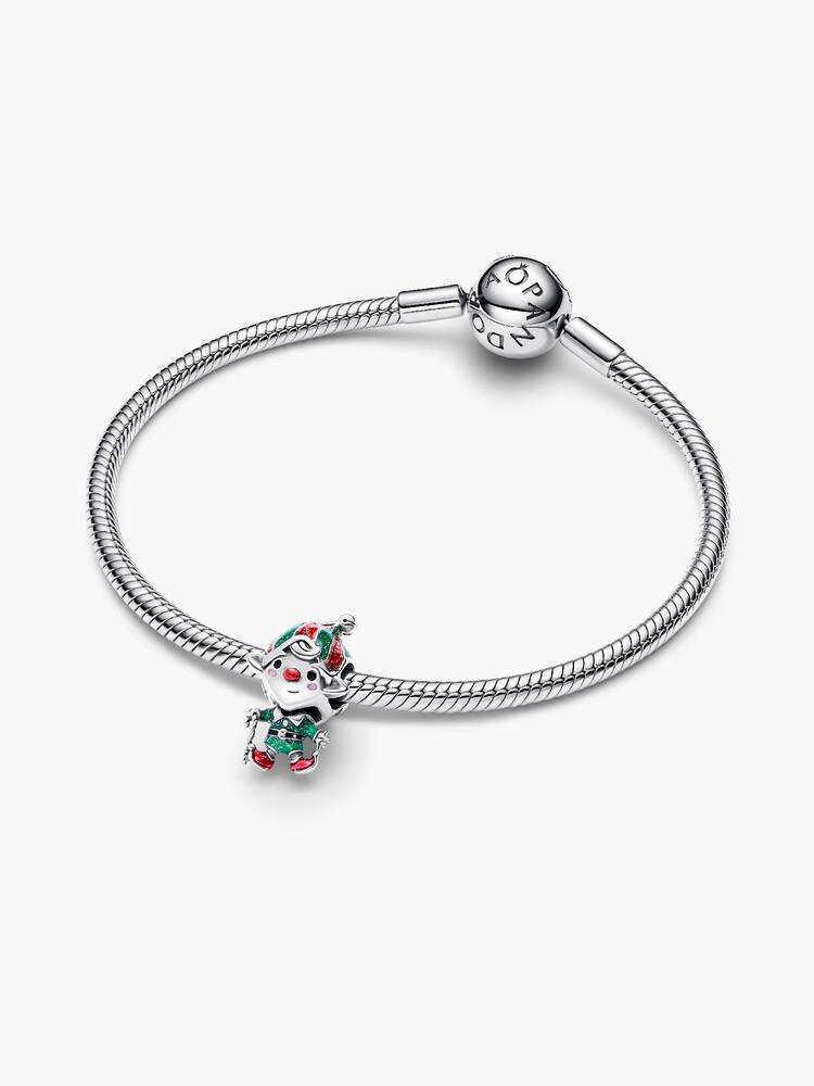 Meet your playful holiday guardian. This sterling silver charm features a moveable elf with vibrant, glittery enamel in festive colours. Crafted with intricate details, it adds a magical touch to your collection.