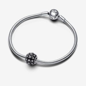 Add a touch of timeless sparkle to your look with the elegant and symbolic Sparkling Pave Round Black Charm. This spherical sterling silver charm is set with a total of 88 clear and black cubic zirconia stones in different sizes, creating a voluminous geometric effect. 88 is a powerful number that represents progress, success and good fortune. It also resembles a double infinity symbol, representing the unlimited possibilities the future holds. Add it to your favourite jewellery styling or gift it to a loved one as a symbol of good things ahead.