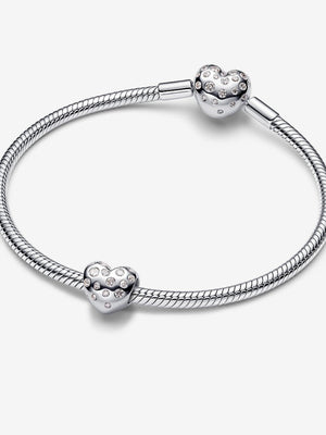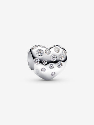 Radiate love with our Heart Charm. Crafted from sterling silver, this meaningful heart-shaped piece features 27 flush-set lab-grown diamonds of different shapes and sizes that scatter across its surface. All finished with a Pandora logo on the back of the charm. The sprinkle of lab-grown diamonds was inspired by shafts of morning light, new days and new beginnings. Wear yours as a precious symbol of all that you love and all that lies ahead of you. To ensure our rigorous standards of quality in color and clarity, each lab-grown diamond has undergone an additional high heat and pressure treatment prior to cutting and polishing. Carat: 0.53 tw. Clarity: VS+. Color: G-I. Shape: Round Brilliant