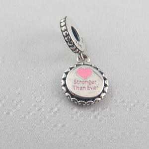 In soft tones of pink and white, and detailed with petite hearts, this sterling silver charm may have a delicate look but it carries a powerful message. Add it to your bracelet as a symbol of hope, with the unifying message “United Together” on one side, and “Stronger Together “on the other.