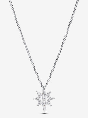 Light up your look with our North Star Pendant Necklace in sterling silver. Featuring the symbolic design of the Polaris shining with clear cubic zirconia from a classic cable chain, this necklace adds a celestial glow to your look with a layer of meaningful symbolism. The chain can be adjusted three different lengths to suit your style. Serving as a compass in uncertain times, the North Star guides us to brighter tomorrows and represents our hopes and dreams. Wear to add sparkle to any festive look or gift it to the shining star of your life. Length 45cm.