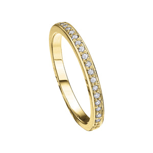 Exclusively hand crafted in 10K yellow gold with a high gloss finish with 0.50TDW diamond women's claw set wedding band which can be worn everyday to make a statement of style. The simplicity of this piece with its classic round cut brilliant diamonds makes it the perfect accessory for all occasions. It would look great with classic solitaires and would also complement the ring with some more glamour and sparkle.
