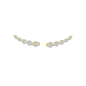 Beautiully crafted in 10K yellow and white gold, these graceful ear climber earrings feature a flowing silhouette adorned with 0.25 carat total weight of round-cut diamonds. The alternating white and yellow stones create a luminous contrast, while the graduated design gently curves along the ear for a modern, sculptural effect. A striking blend of sparkle and sophistication—perfect for evening wear or elevated everyday style.