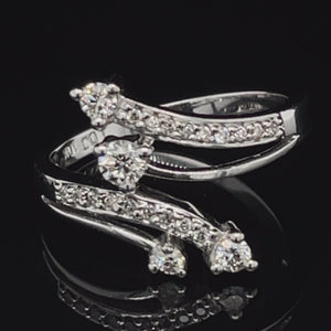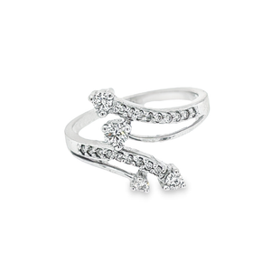 This beautiful Ring is the perfect way to accessorize a formal wardrobe with its brilliant design! Meticulously hand crafted to perfection this ring features sparkling round diamonds in shared prong setting, on bypassing shank at the center and center hosted with a slightly large diamond in prong-set to add to brilliance. A total of 0.35 carat of diamonds are set in 10K white gold with a high gloss finish.
