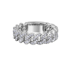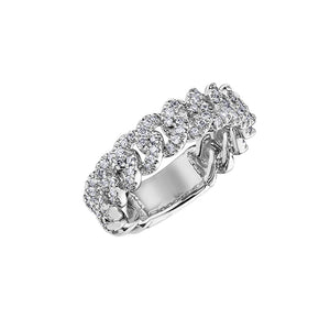 This is a unique and stylish diamond ring that features a chain link design in 10K white gold. Each link is adorned with a round diamond that sparkles with 0.50TDW. The ring is made of high-quality and pure 10K white gold.