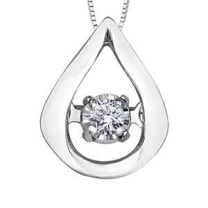 10K White Gold 0.02tdw pear pendant with solitaire in the centre which is on a special setting and moves with our body movement creating a nice motion and an amazing sparkle in the Diamond, featuring exceptional Design, Craftsmanship and finishing. This beautiful pendant can be worn by it self or layered with other pendants. Perfect gift for Mothers Day, Birthdays, Valentines Day, Graduation, Christmas or just about any other occasion. Includes 10K White Gold fine 18 inch Chain.