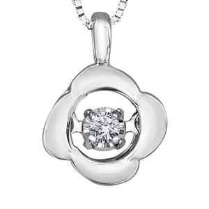 10K White Gold 0.02tdw fancy pendant with solitaire in the centre which is on a special setting and moves with our body movement creating a nice motion and an amazing sparkle in the Diamond, featuring exceptional Design, Craftsmanship and finishing. This beautiful pendant can be worn by it self or layered with other pendants. Perfect gift for Mothers Day, Birthdays, Valentines Day, Graduation, Christmas or just about any other occasion. Includes 10K White Gold fine 18 inch Chain.
