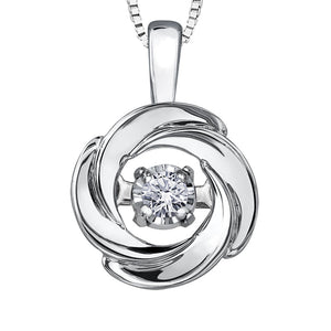 10K White Gold fancy pendant with solitaire in the centre which is on a special setting and moves with our body movement creating a nice motion and an amazing sparkle in the Diamond, featuring exceptional Design, Craftsmanship and finishing. This beautiful pendant can be worn by it self or layered with other pendants. Perfect gift for Mothers Day, Birthdays, Valentines Day, Graduation, Christmas or just about any other occasion. Includes fine 18 inch Chain.