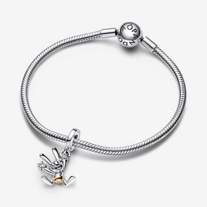 Celebrate one of the Disney's original characters. Oswald is hand-finished in sterling silver with hand-applied black enamel eyes and 14k gold trousers. He is playfully holding a sparkling lab-created diamond in one hand and swinging from the bail with the other. To commemorate 100 years of magic, "Disney 100" is engraved on the back of his head. Wear this limited edition charm as a reminder to reach for your dreams - just like Oswald.