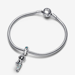 Dare to dream with Disney's Princess Jasmine. Celebrate the 30th anniversary of Disney’s classic film, Aladdin, with this sterling silver dangle charm featuring the brave and self-assured Princess Jasmine. Wearing her iconic outfit, our Disney Aladdin Princess Jasmine Dangle Charm is set with round brilliant-cut icy green man made crystals in her favourite colour. Prepare to be swept away on a magical adventure and style this meaningful dangle charm on your favourite charm holder, to let your bravery shine for all to see.