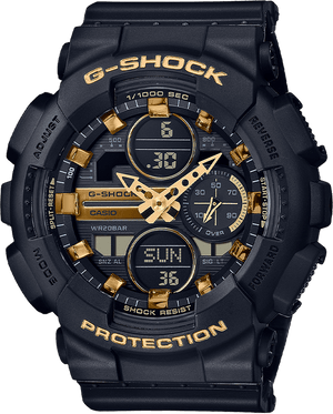 Introducing new compact G-SHOCK models that are great choices for women who prefer G-SHOCK styling. These new models represent a down-sizing of the popular GA140. Case/bezel material: resin, resin band. Size of case : 49 x 45.9 x 15.8mm. 200 meter water resistance. Magnetic resistant, shock resistant, mineral glass.