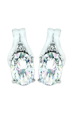 April White Topaz Birthstone Earring with Genuine Diamond accent on top of the center stone set in 10k White Gold. It is a beautiful delicate earring designed to bring out the actual colour of the coloured gem. It is a perfect gift for yourself or someone special to celebrate a birthday or a memorable moment.