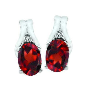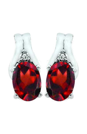 January Garnet Birthstone Earring with Genuine Diamond accent on top of the centre stone set in 10k White Gold. It is a beautiful delicate earring designed to bring out the true colour of the coloured gem. It is a perfect gift for yourself or for someone special to celebrate the special birthday or a memorable moment.