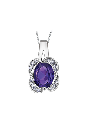10k White gold pendant set with beautiful oval shape 8x6mm genuine Amethyst accented with small diamonds on the edges of the frame to give it the classic elegance and style. A breathtaking pendant that shows the color of the amethyst and looks stunning. You can wear this for any occasion. Matching earrings can be purchased separately to complete the set.