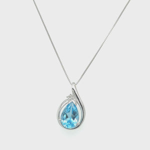 10K White Gold Blue Topaz Pendant which features exceptional Design, Craftsmanship and finishing. Perfect gift for Mothers Day, Birthdays, Valentines Day, Graduation, Christmas or just about any other occasion. There is one diamond accent set on top of the Oval Blue Topaz Includes 10K White Gold fine 18 inch Chain.