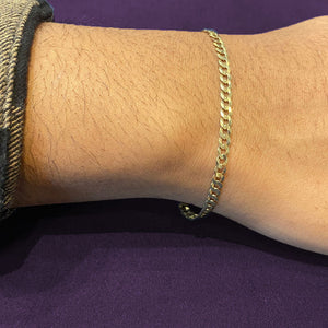 10, 14 Karat Yellow Gold Hollow Curb 3.5 mm Italian Bracelet with Lobster Clasp. It is made with highest quality standards. Bracelet measures 7" in total and is suitable for Women. The curb Bracelet is a jewellery Bracelet design consisting of continious small circular links. An attractive bracelet that looks great alone or layered with multiple bracelet to complete your desired style. This Bracelet comes in a Jewelry box or pouch.