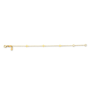 Discover elegance with this 10K yellow gold bracelet. It is crafted from 10K gold with highest quality standards. Featuring a delicate chain adorned with small cross-shaped charms, this bracelet offers a blend of simplicity and sophistication. The adjustable clasp ensures a perfect fit for any wrist size, making it a versatile accessory for any occasion. The style is immensely popular throughout the world. An attractive bracelet that looks great alone or layered with multiple bracelet to complete your desired style. This Bracelet comes in a Jewelry box or pouch.