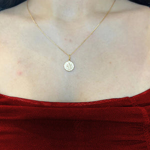 10, 14 Karat Yellow Gold Hollow Confirmation Medalion. Confirmation medals commemorate entry to the Catholic community and a commitment to a life of grace. It is small in size. This fine piece of jewellery is a terrific embodiment of the fusion between elegant style and true Christian devotion.