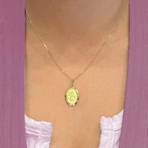 10, 14 Karat Yellow Gold Solid Saint Christopher Medallion. Saint Christopher is one of the most popular Catholic Christian heroes of the Faith. It is a regular size Medalion. St. Christopher has a cultural association with protection, and people have been giving medallions and necklaces bearing his likeness to their traveling loved ones.