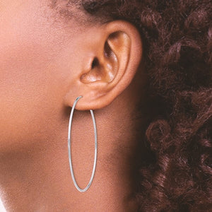 10k White gold 42mm sleeper earrings are a staple. All women young and old would want to own these as it helps protect their piercing from closing and are also extremely comfortable to wear every day. Perfect for all ages. These are delicate and simple looking but extremely popular. It is only 1mm thick and is also loved by teenagers.