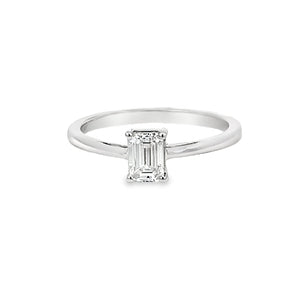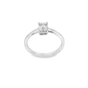 This elegant ring is crafted from 14K white gold with a 0.50-carat emerald-cut total diamond weight (TDW) of a lab-created diamond. The emerald cut, known for its elongated shape and stepped facets, enhances the diamond’s beauty and brilliance. It's an Ideal accessory for engagements or special occasions, this ring combines the classic allure of white gold with the modern appeal of lab-grown diamonds, offering both beauty and ethical choice.