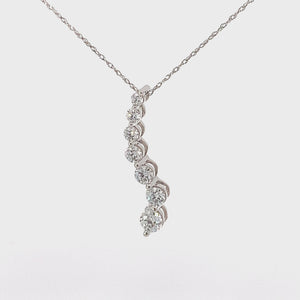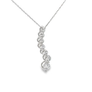 This journey pendant features a series of lab-grown diamonds that increase in size along an S-curve, totaling 1.00 carats. Set in 14K white gold, the pendant reflects a path of growth and shines with promise. It’s suspended on a fine chain, perfect for marking significant achievements or moments.