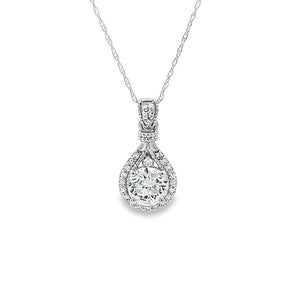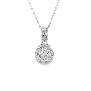 This stunning 14K white gold pendant featuring a central lab-grown diamond weighing 1.0 carat, surrounded by additional smaller lab-grown diamonds with a total diamond weight (TDW) of 1.15 carats. This beautiful teardrop shape pendant can be worn by it self or layered with other pendants. Perfect gift for Mothers Day, Birthdays, Valentines Day, Graduation, Christmas or just about any other occasion. Includes 10K White Gold fine 18 inch Chain.