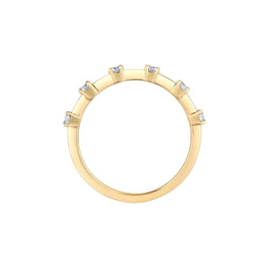 This elegant Canadian diamond band crafted from 14K yellow gold. The band is adorned with a series of sparkling Canadian diamonds, totaling 0.25 carats in diamond weight (TDW). The diamonds are set in a prong setting, evenly spaced around the band, creating a stunning and continuous sparkle. This band is a beautiful piece of jewelry, perfect for special occasions or as a timeless addition to any jewelry collection.