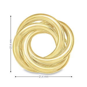 These elegant earrings feature a classic love knot design, crafted from 14k yellow gold. The intertwined loops symbolize eternal love and unity. Their polished finish and rich gold hue make them a timeless accessory, perfect for any occasion. These earrings are 21.4mm in length and 21.4mm in width at the base, are light in weight, and are very comfortable to wear.