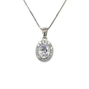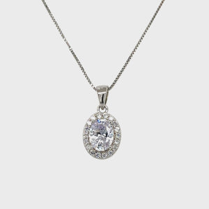 April Birthstone oval-cut large White CZ pendant set in Sterling Silver with Cubic Zirconia stones. It is a beautiful pendant designed to bring out the true colour of the centre gem. Pendant comes with an 18" Sterling Silver Chain. It is a perfect gift for yourself or for someone special to celebrate the special birthday or other memorable occasions.