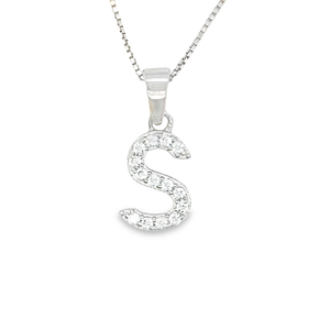 Exquisitely hand-crafted initial letter "S" pendant in sterling silver. This graceful pendant can be worn by it self or layered with other pendants. Perfect gift for Mothers Day, Birthdays, Valentines Day, Graduation, Christmas or just about any other occasion. Box chain 18 inches length is included..
